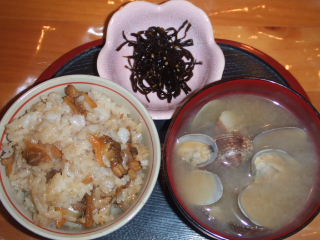アサリご飯とアサリのお味噌汁。これまたおいしかった♪