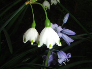 木陰のスノーフレーク(スズラン水仙)とシラー・カンパニュラータ(ツリガネ水仙)