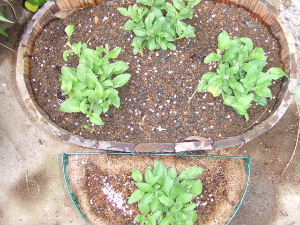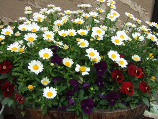 秋に植えたノースポールとパンジーの寄せ植え。春の日差しでグングンと元気に育ちました。