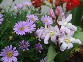 小さな菊の仲間・ブラキカム。白・黄色もあるけど紫が一番強いみたい。毎年春と秋、花壇を賑やかにしてくれます。