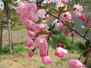 桜の木を探したけれど意外にも植林されていないみたい。代わりにカイドウの愛らしいピンクがまぶしかった。
