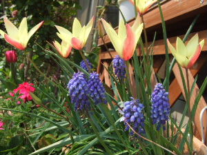 0704090019.JPGムスカリ&ハナニラと一緒に、昨年から植えっぱなしの原種チューリップ“クルシアナ・クリサンタ