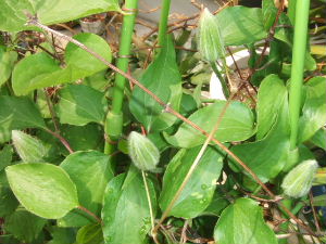 0704110006.JPG昨年200円の売り切り特価のクレマチス。ラベルがなかったのだけど、蕾の感じが八重っぽいかな。なんだかうれしい予感♪