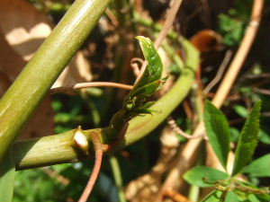 0704140001.JPG親苗は屋外で冬越し。葉は枯れてしまったけど、ツルから新しい葉が生えてきました。